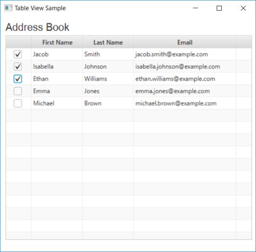 おのれ、チェックボックス こんな画面、ギョームアプリケーションを作ったことがある方なら一度はあると思います。 チェックボックスを選択して、その行に対して操作を行うみたいなやつ。 JavaFXでは、CheckBoxTableCellというチェックボックス入りのテーブ…
